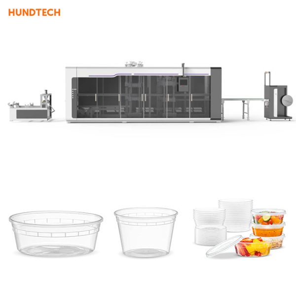 This machine is suitable to handle different materials, such as PP, A-PET, R-PET, C-PET, BOPS, HIPS, PP, PLA, PVC and barrier material. It could produce many items such as Sandwich Plastic Box Container, clam-shells, nursery trays and plates. It could use for making different products by easily changing mounds.